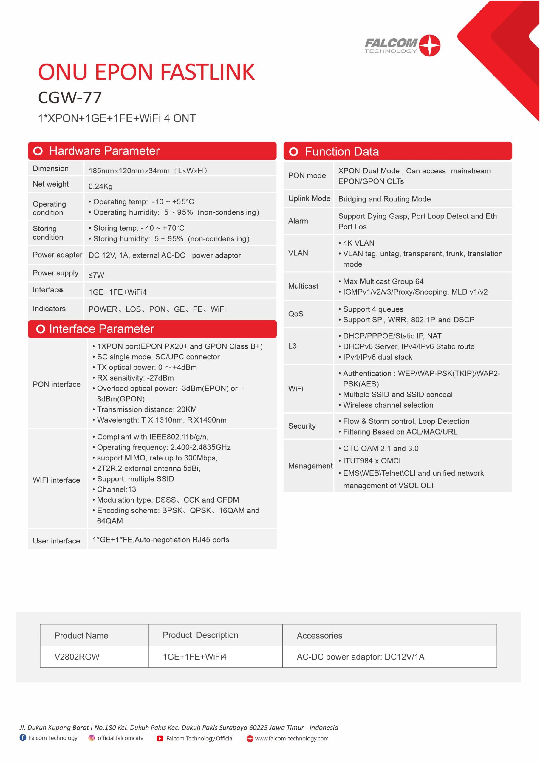 Product Name : Dual Mode IPTV XPON ONU 2GE WIFI
